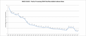 While the industry has been safely increasing line speeds over the past 30 years, the poultry industry’s injury and illness rate has fallen 90 percent, according to the most recent data from the U.S. Department of Labor, demonstrating the tremendous advancements the industry has made in improving safety for its workforce.